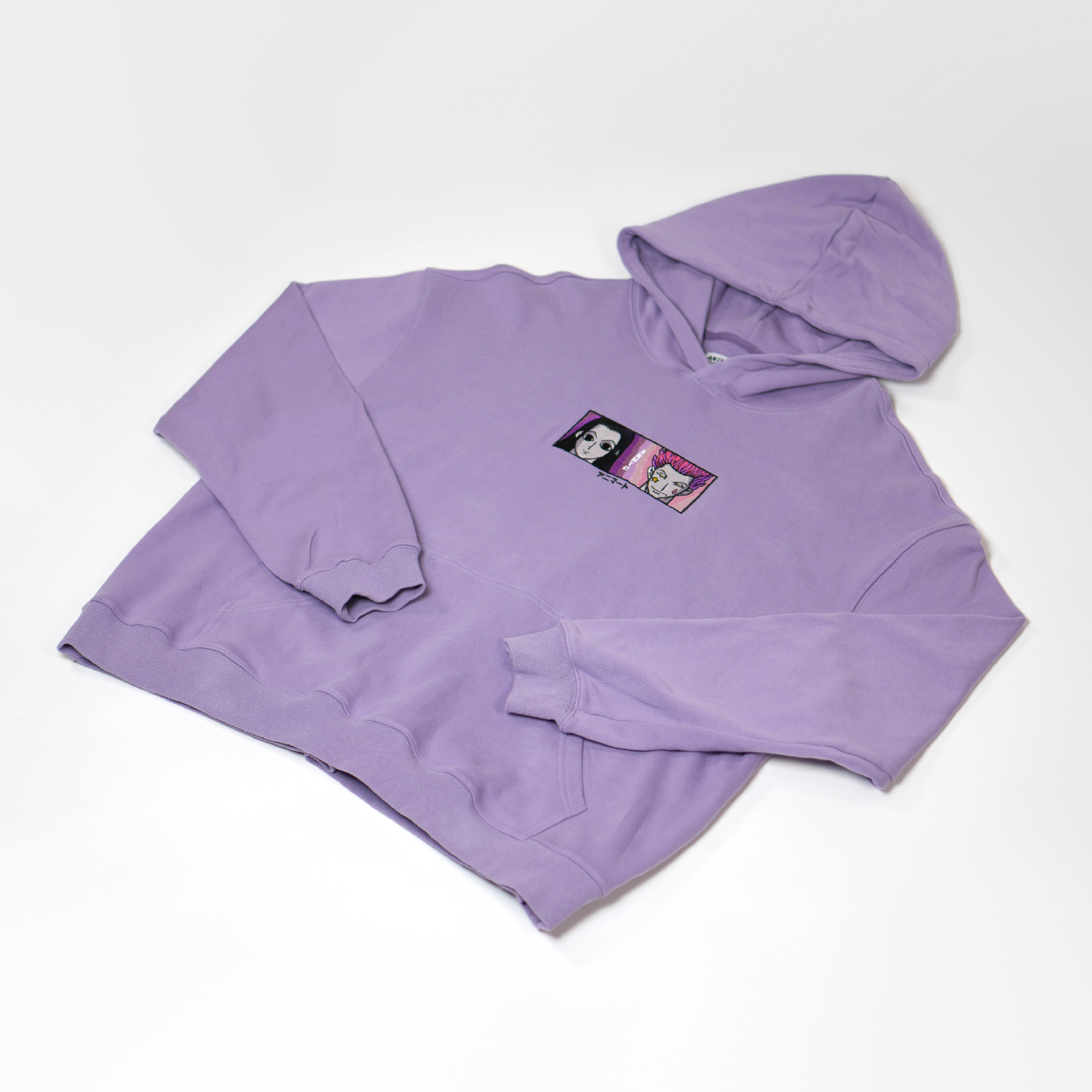 This hoodie is a revamped design of an old classic that was dropped back in 2021. This piece was a huge hit, and this is the first time since then that it has returned, now with upgraded materials and fittings. It's a hoodie with a simple concept combined with beautiful execution. It's the original box embroidery design with these two "Villains" and is a direct parallel to the first box embroidery hoodie I made, which featured the two main characters from this anime. Between the color, embroidery, fit, and quality, this is a simple hoodie done perfectly.